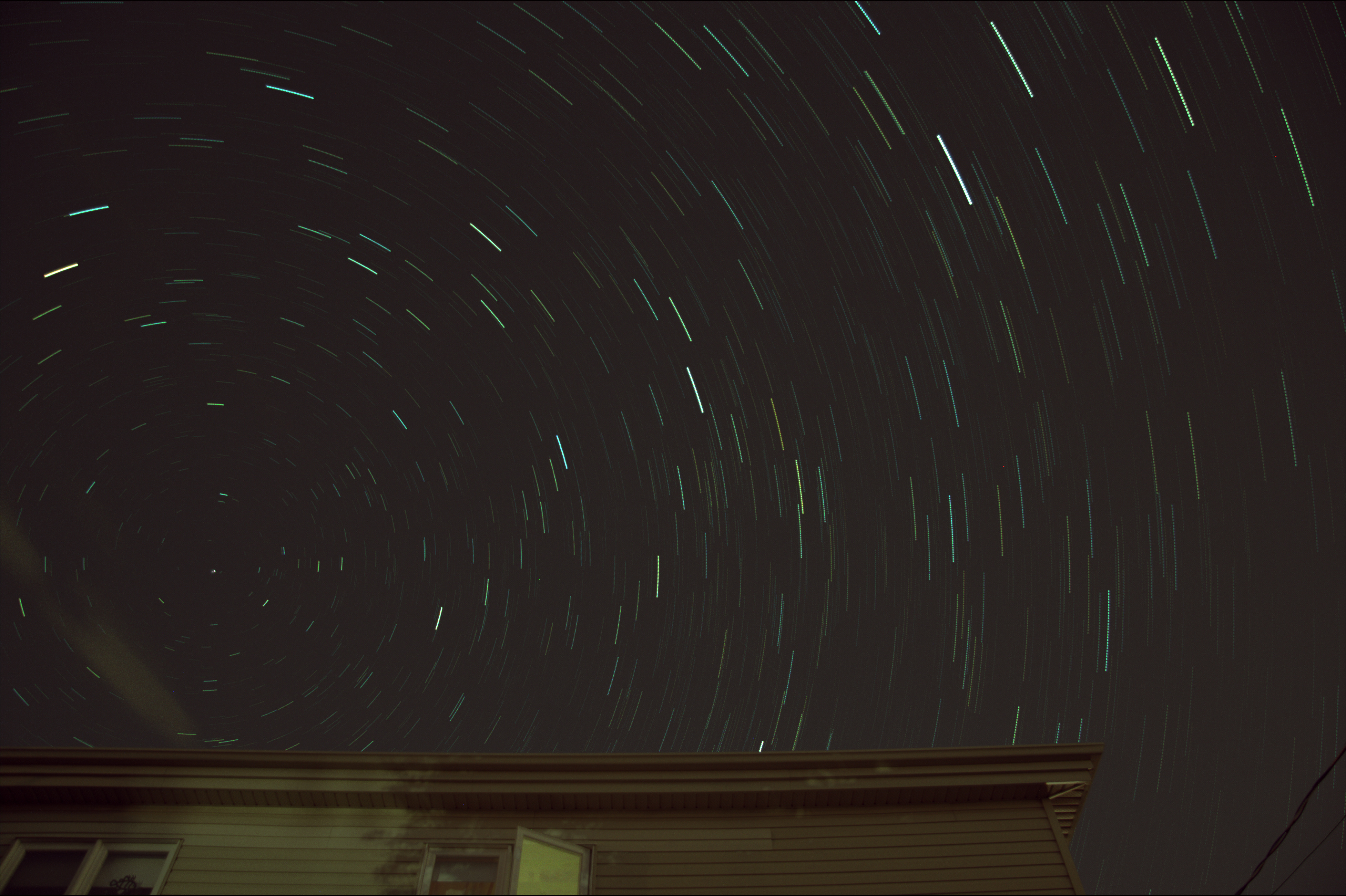 Out of the over 120 shots taken, a sequence of 30 frames were without clouds obscuring the stars. This was a perfect opportunity to mark the celestial pole by adding the images without alignment.