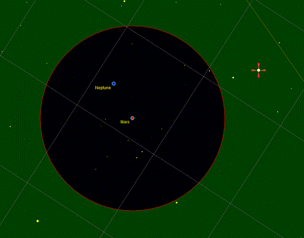 Neptune and Mars 1/3 degree – December 31 (1 degree circle)