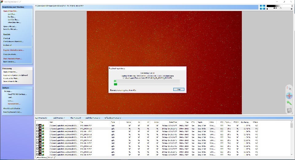 The remaining tabs can remain with the default setting. Hit OK and the program will now start processing all the photos. Note that DSS will still register each image even if you selected No Alignment. If you know how to prevent this waste of time, please tell me in the comment below.