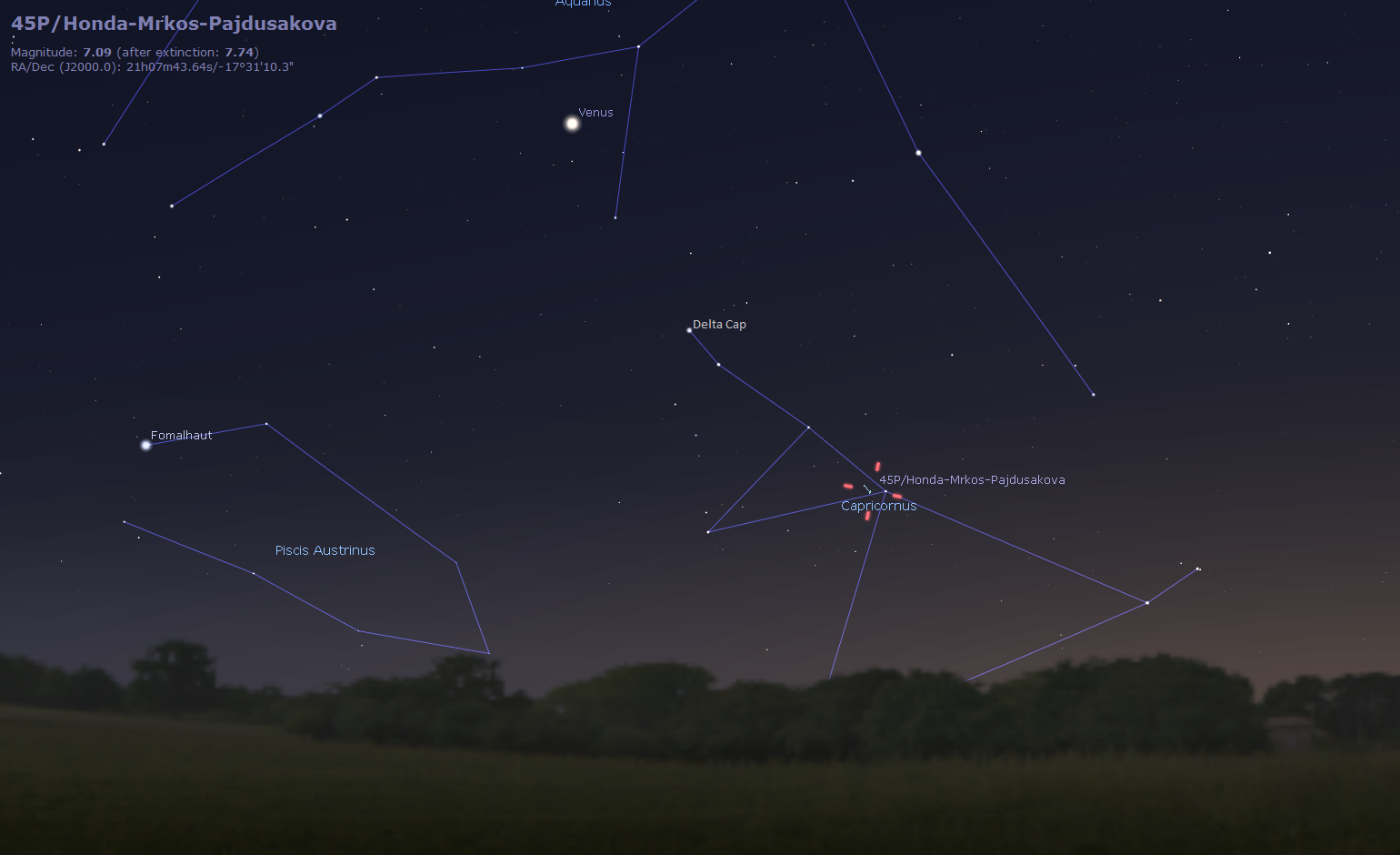 And as a bonus, comet PanSTARRS (C/2015 ER61) will also make its closest approach to Earth on the 19th, but 10 times farther away as the asteroid. I should be visible with small telescopes or binoculars in the constellation Aquarius in the dawn sky.